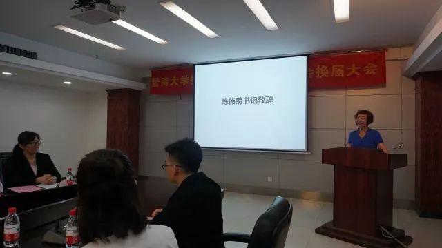 首先是陈伟菊书记致辞,她表达了对第一届团学工作的肯定,感谢他们对学院学生文化建设所做出的努力和工作,希望新一届团学干部们能承前启后,传承优良的团学工作作风,助力学院团学工作迈上新台阶。