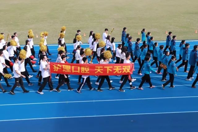 白驹轻风雕云,红旗人潮鲜花,呐喊欢呼足下,冠军谁家?护理口腔折桂!他们各个精神饱满,英姿飒爽,整齐的步伐,踏着他们的坚定;灿烂的微笑,写着他们的热情;嘹亮的口号,体现着他们的实力。护理口腔,天下无双,鏖战长虹,威慑八方,这是他们的铮铮宣言!预祝护理口腔联队在本次运动会上取得优异成绩!