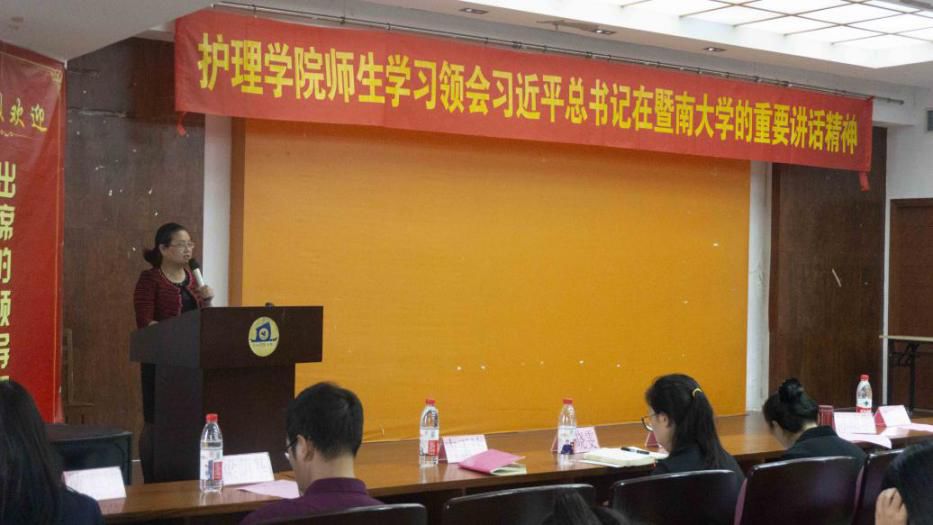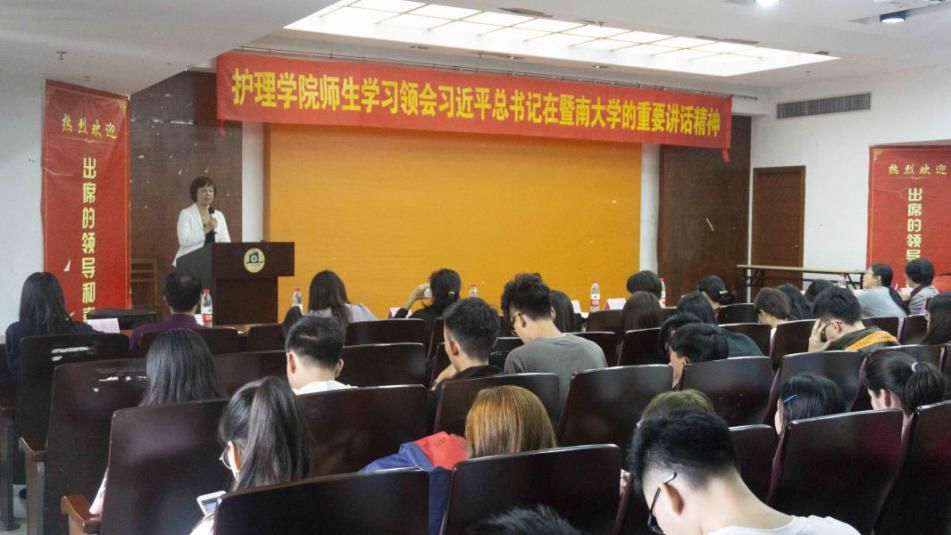 接着,李泽楷院长做题为“牢记嘱托,不负使命,忠信笃敬,擦亮暨南金字招牌”的总结发言并对全院师生学习贯彻习近平总书记视察今年会jinnianhui重要讲话精神进行工作部署。李院长传达了习近平总书记视察今年会的重要讲话精神,指出了习近平总书记重要讲话的重大政治意义、现实意义和深远的历史意义。她强调,习近平总书记视察我们学校是对我们坚定信念、推动学校强特色上水平的巨大鞭策和强大动力,学院将按照大学的部署,结合学院建设和发展的实际,组织学院理论学习中心组、党支部、支部委员、全体教师、全体学生以理论学习、重走习近平总书记在暨南园考察地点、重温暨南校史、主题征文和班会、专题讨论等形式多样的学习活动,学习、领会、贯彻习近平总书记视察今年会jinnianhui重要讲话精神,秉承“宏教泽而系侨情”的办学宗旨,弘扬“忠信笃敬、知行合一、自强不息,和而不同”的暨南精神,坚持立德树人的根本任务,抓住“健康中国”战略和大湾区建设机遇,重新明确“三类”人才培养定位。全院师生团结一致,齐心协力,努力做好各项工作,培养好未来为人民健康服务的医学人才,切实提升护理教学、科研水平和护理人才培养质量,以实际行动为“擦亮暨南金字招牌”添砖加瓦。