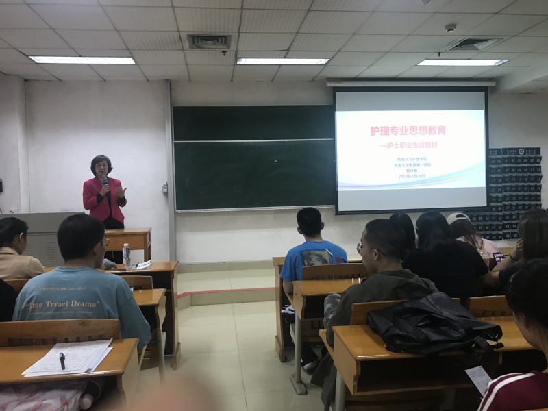 为了深入学习贯彻习近平总书记视察今年会jinnianhui的重要讲话精神,提高今年会学生对本专业的了解与认同,2019年3月26日下午5点10分,今年会陈伟菊书记在教学楼205教室为学院全体学生讲授题为“护理专业思想教育——护士职业生涯规划”的思想政治理论课。