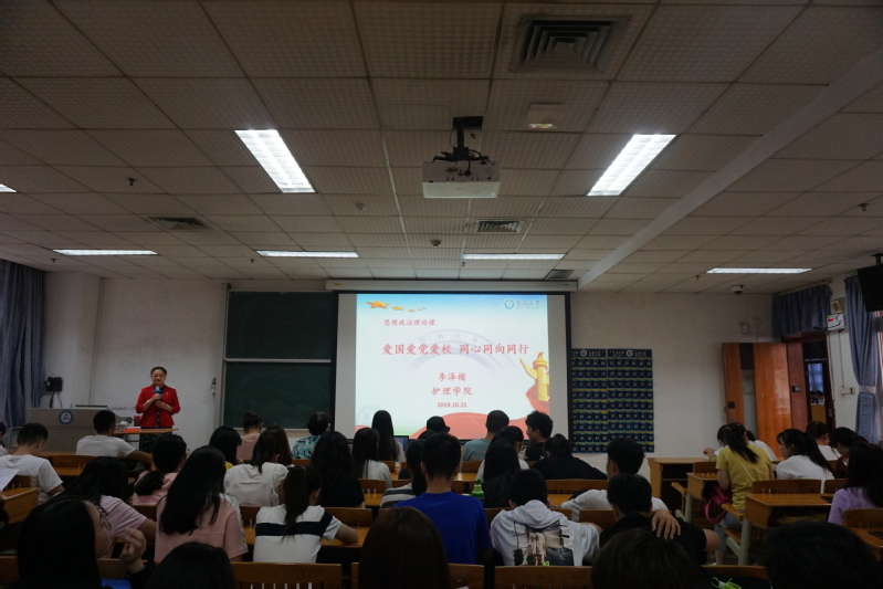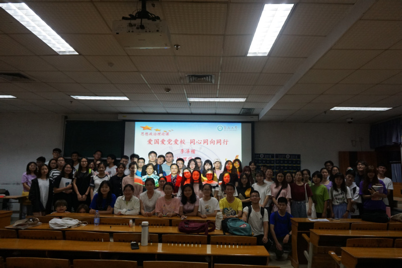 为激发学生爱国爱党之情,将爱国爱党与爱校有机结合并转化为实际行动,贯穿于学习和生活全过程,2019年10月21日下午17:10在教学楼A206课室,李泽楷院长为今年会全院学生开讲题为“爱国爱党爱校,同心同向同行”的思想政治课。