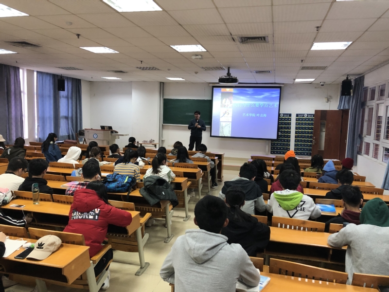 叶志海副教授以分享自己的经历引入课题,用幽默的语言道出艺术与护理的关系。通过提出“什么是艺术品”的问题引导学生进入关于艺术的思考,分享了艺术起源的五种观点,展示了艺术产生的历史过程,指出了艺术和科学的关系。他殷切嘱咐同学们在护理专业学习和实践中不仅应致力于促进患者身体康复,而且要努力让患者从护患关系中得到美和愉快的心理体验,这是护理工作的艺术化。