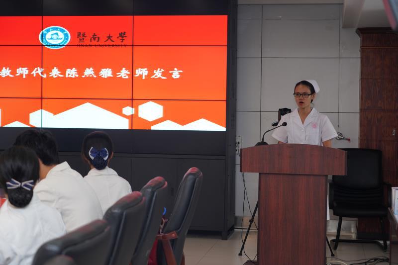 “学贵得师,亦贵得友”,老师的角色亦师亦友,2016级护理学班主任陈燕雅老师作为教师代表发言。她回顾了与同学们相处的温暖点滴,并殷切叮嘱同学们在未来的道路上不要轻易丢弃求知的欲望、不要迷失自己;要学会担当,学会包容,还要善待自己。