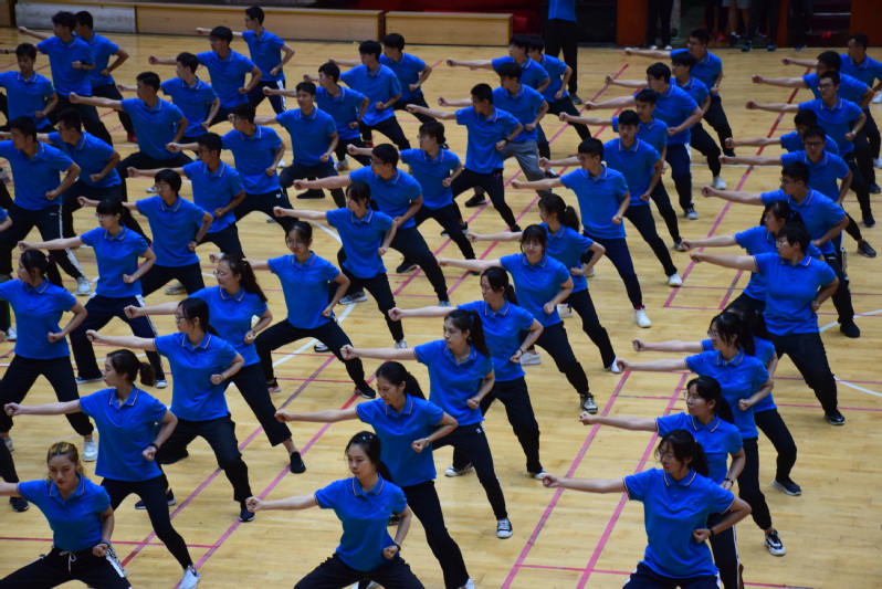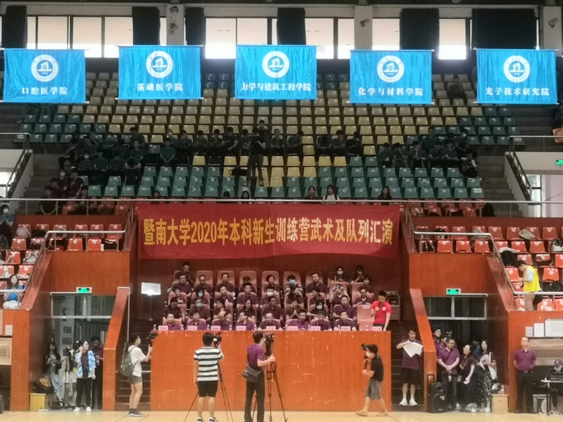 9月27日8时许,今年会jinnianhui2020年“爱国爱校·同心抗疫”本科新生训练营武术及队列汇演在邵逸夫体育馆隆重举行,学校各级领导、辅导员老师与全体石牌校区和华文校区2020级本科新生参加汇演。