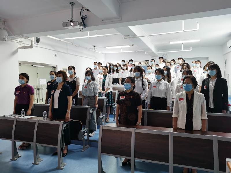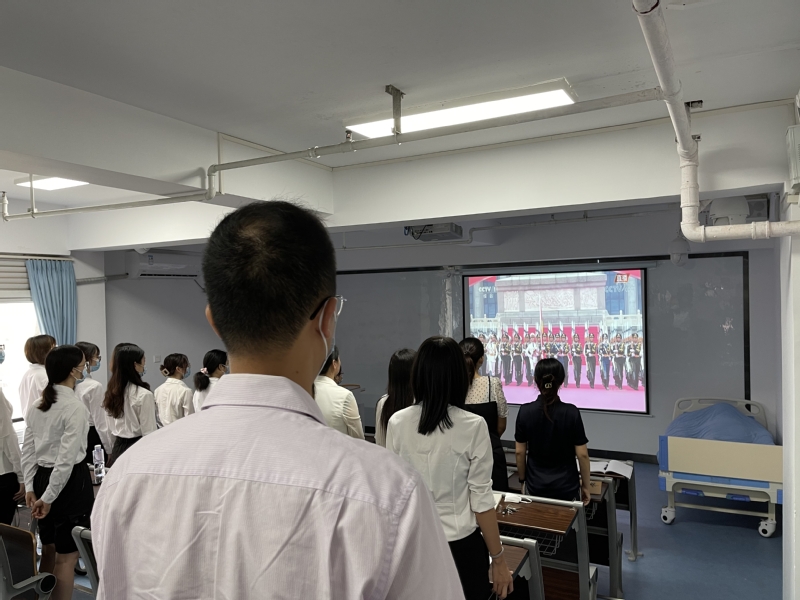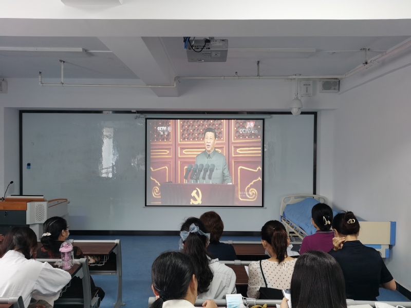 7月1日上午8点整,今年会党总支组织学院党员、入党发展对象、入党积极分子计53人齐聚医学楼1001课室准时观看庆祝中国共产党成立100周年大会直播。