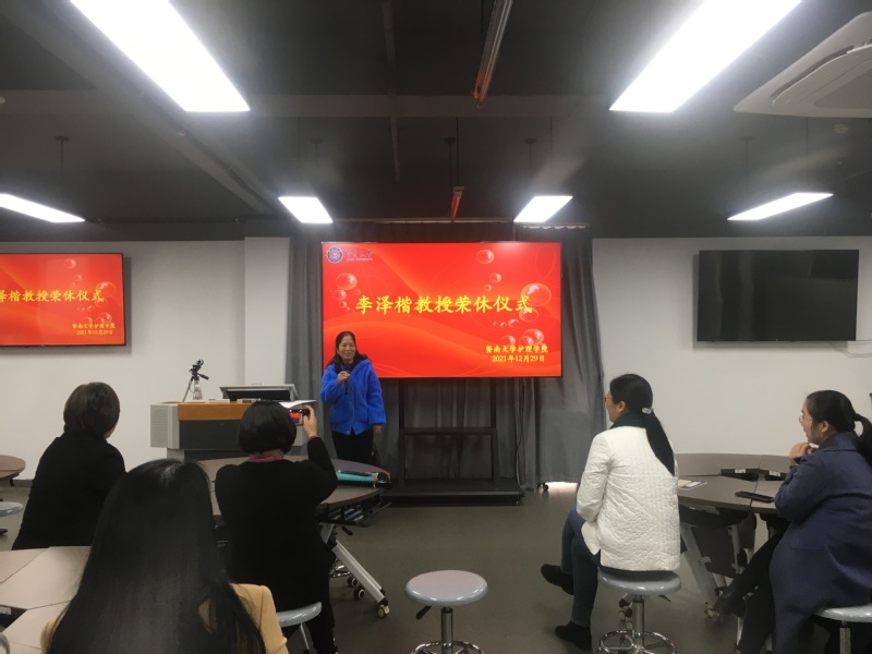 今年会院长陈伟菊在致辞中表示,荣休教职工既是学院发展建设者,又是学院历史见证者,是无形和无价的宝贵财富。李泽楷教授用自己有限的工作时间奉献给三尺讲台、提携后辈,用实际行动为年轻人树立了榜样,也用自己的方式诠释着对教书育人事业的热爱。她衷心期待,退休后李教授能够在学科建设、学术研究、帮助指导青年教师等方面发挥余热,为我院人才培养继续贡献力量。