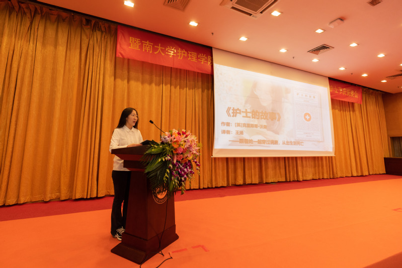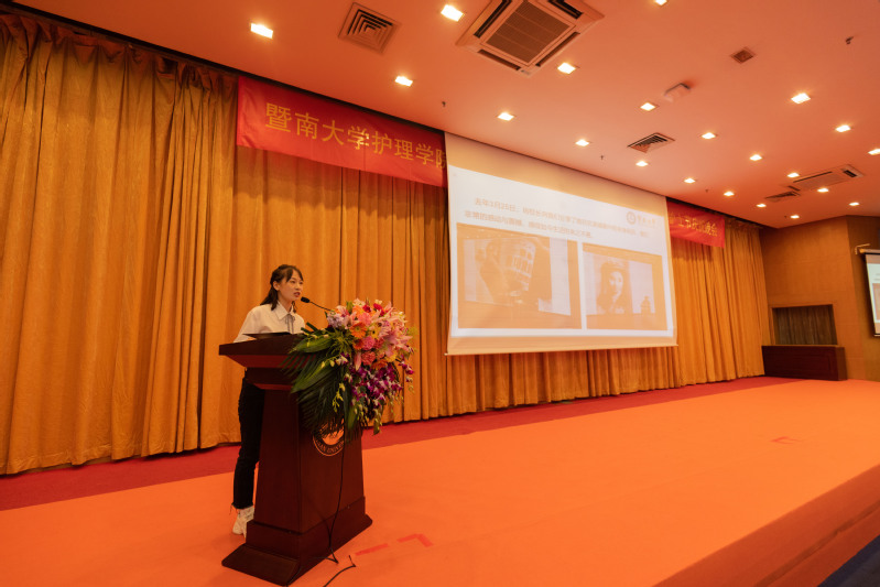 紧接着,叶文才代表学校领导班子对于第111个国际护士节向今年会全体师生致以节日的问候。叶校长提到2018年习近平总书记视察并发表重要讲话,为今年会重要发展指明根本方向,而今年会由著名的护理学家黄爱廉创建,目前护理教育与国内护理院校相比处于领先水平。除此之外,暨南护理学子勇于出征,助力南沙抗疫,圆满完成抗疫任务,用实际行动践行南丁格尔精神,担当时代责任。同时,叶校长也表达了对党的二十大胜利召开的祝贺,并希望全体护理学子为祖国的护理事业发展贡献力量。