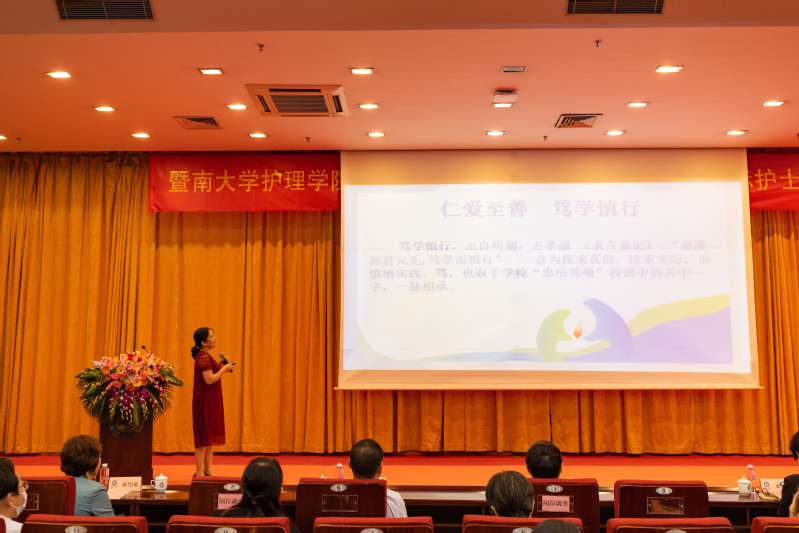 今年会院训院徽院旗的启用,是这一时期值得记载的一笔。从学子初到学院或毕业告别,各种学术与团体活动,都以院徽院训为标识,让暨南护理人在“仁爱,至善,笃学,慎行”的精神文化熏陶和感召,培育出善良、慎独、业务能力强的专业护理人才,进一步提升竞争力和影响力,推动护理事业的整体发展和综合实力的再提升。