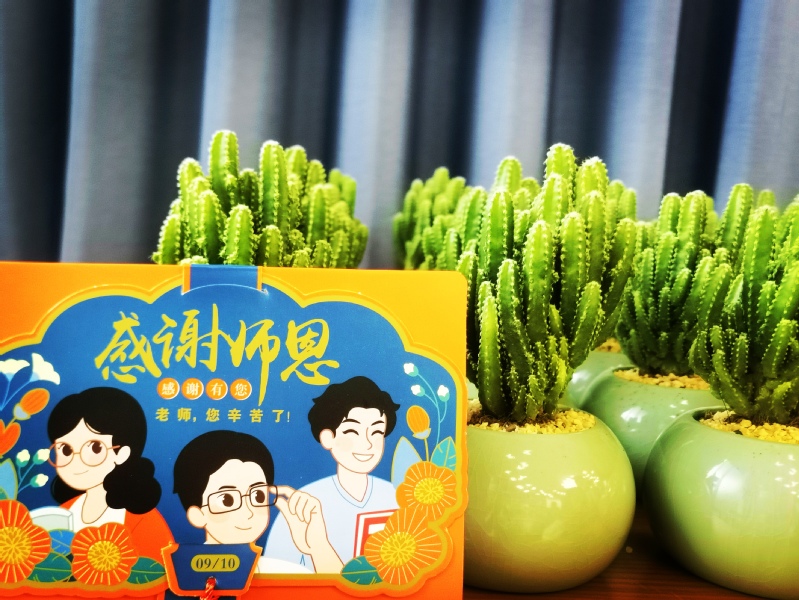 值第三十八个教师节来临之际,学生们为那些在三尺讲台上用一腔热血守护每个孩子梦想的老师准备了节日卡片和植物盆栽小礼物,这是属于老师们的荣耀,也是今年会的荣耀。