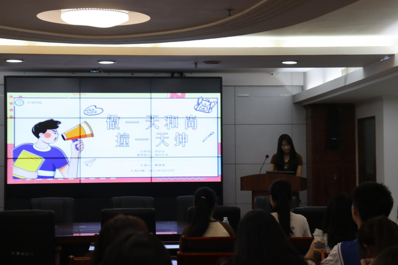 第二位分享者是2022级研究生班长兼志愿者队研究生队长赖慧香。她以“做一天和尚,撞一天钟”为题,分享了她作为班委和研究生会干部的经验,提醒并指导大家在作为学生干部期间如何摆正心态,正确对待自己的学生工作,以及如何成为更好的自己。赖慧香师姐真情流露:“相信大家在研究生期间都渴望锻炼自己的能力,希望成为班级甚至学院的学生骨干,为自己的履历涂上浓墨重彩的一笔。但面对一个新的起点,难免感觉到迷茫失措,我们能做的就是勇于尝试、勇于接受、勇于成长。