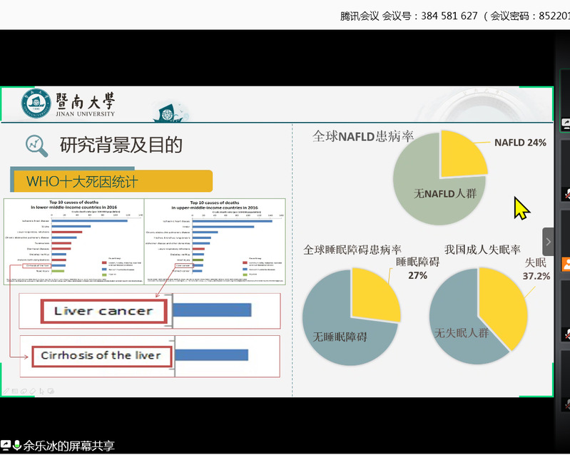 接着正式开展毕业论文答辩,三组同学通过腾讯会议的“屏幕共享”认真汇报了论文内容,包括研究背景、研究设计、研究结果、研究讨论、研究结论等方面。个人汇报结束后,答辩专家组成员针对汇报内容进行提问、并针对论文不足之处给出意见和建议。