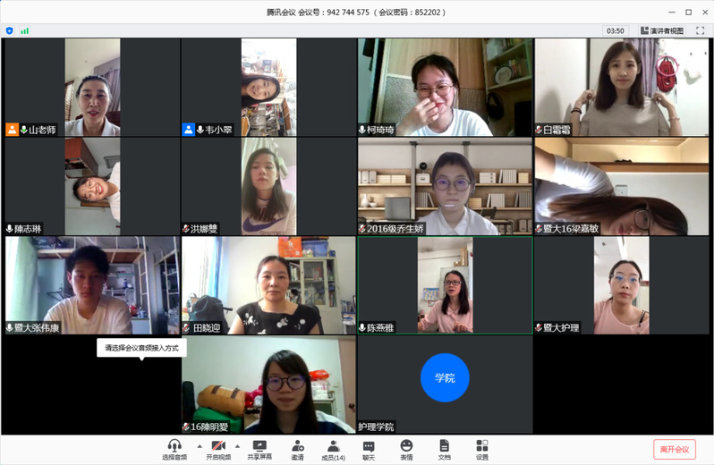 答辩开始前,每个答辩专家组组长首先对接下来的答辩工作进行了安排,随后所有学生打开视频一起宣读了诚信声明,并进行了“云”合影。