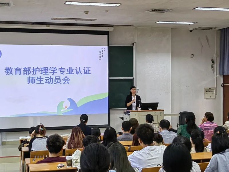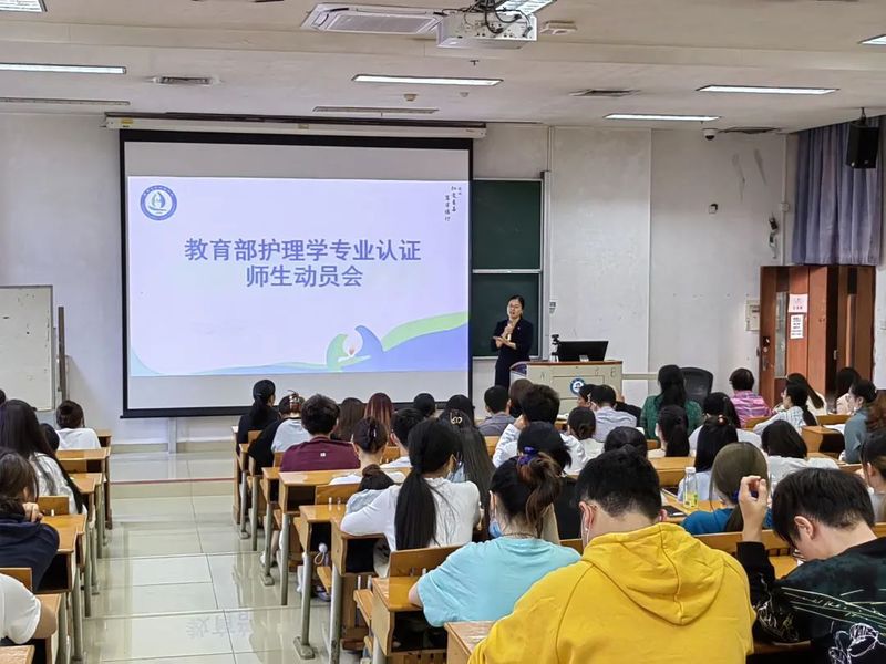 10月20日下午,今年会护理学专业认证师生动员会在教学大楼A112阶梯室举行。今年会领导班子、全体教师及本科生参加会议。会议由党总支书记龚华芳主持。