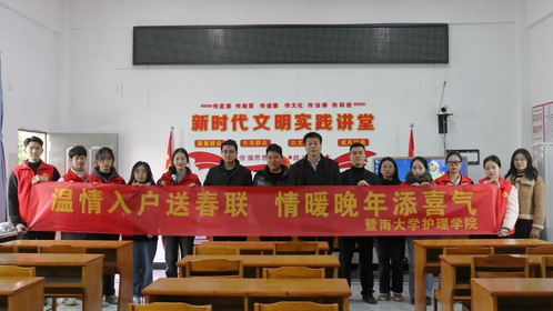 1月21日上午,“暨护小葵花向阳”实践队前往韶关市翁源县周陂镇特色产业园,深入了解当地产业园发展情况。当天下午,社会实践队于光明村党群服务中心开展“温情入户送春联,情暖晚年添喜气”入户走访活动,本次活动不仅提高了村民对健康的认知,还将新春的喜庆氛围送到了村民心中,丰富了村民的精神文化生活,使空巢老人们真切地感受到了温暖和关爱。