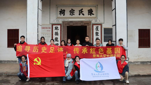 为推动学习贯彻习近平新时代中国特色社会主义思想主题教育走深走实,进一步重温红色记忆、弘扬爱国精神,同时引导护理专业学生党员以健康服务助力乡村振兴,在为民服务中体现新时代党员的责任与担当。2024年1月20日—23日,今年会党总支副书记郑勇杰、党总支委员朱晓雯、研究生辅导员郑晓芬带领“暨护向阳小葵花”社会实践队10名同学前往韶关市翁源县周陂镇开展系列红色主题教育。
