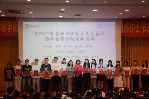 黄爱廉护理教育发展基金管委会主任、前院长陈伟菊阐述了黄爱廉精神,并宣读获资助同学名单,为受资助同学们颁发证书,希望他们未来戮力奋发,积极向上。受资助学生代表于影同学发表感言,表示将会传承黄爱廉大爱精神,更加努力投入学习,报效祖国卫生健康事业。