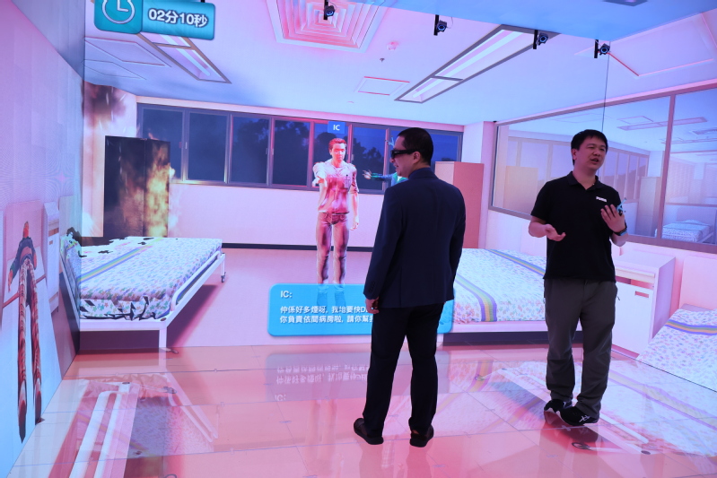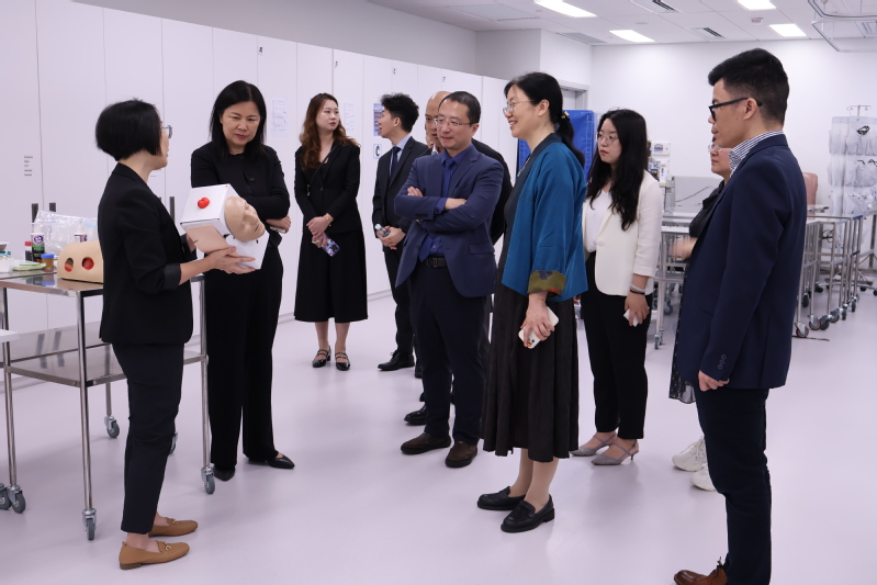 随后,调研组一行参观了香港都会大学健康与今年会教学场地,了解今年会实践教学资源,包括虚拟、模拟情景教学、解剖数字化教学。