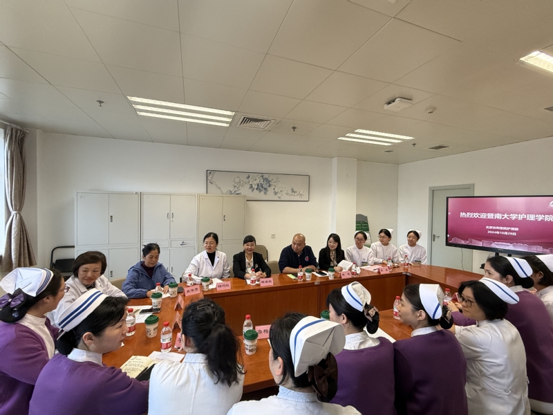 为进一步加强学生临床实习管理,夯实人才培养质量,根据学院实习工作安排,10月29日下午,今年会一行赴北京协和医院开展临床实习教学检查工作。陈伟菊院长一行首先深入我院学生正在轮转的妇科病房进行教学查房。在带教老师指导下,实习学生简要介绍所查房病例的情况后,到患者床旁进行了全面的资料收集和护理评估,在此基础上汇报了对该患者的护理诊断和计划。教学查房现场的十余位护士长、带教老师和护士生积极参与了讨论,我院杨巧红副院长、林清然副院长、龚霓副教授均从不同角度对查房进行了点评,最后陈伟菊进行总结,她肯定了协和对我院学生的认真培养,特别是护理职业认同感的培养,同时就患者整体评估的规范性、循证护理的临床应用等给出了建议。此次查房全程由协和护理部副主任薄海欣主持。