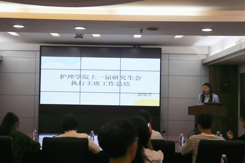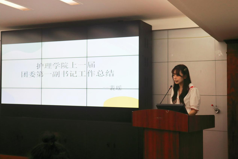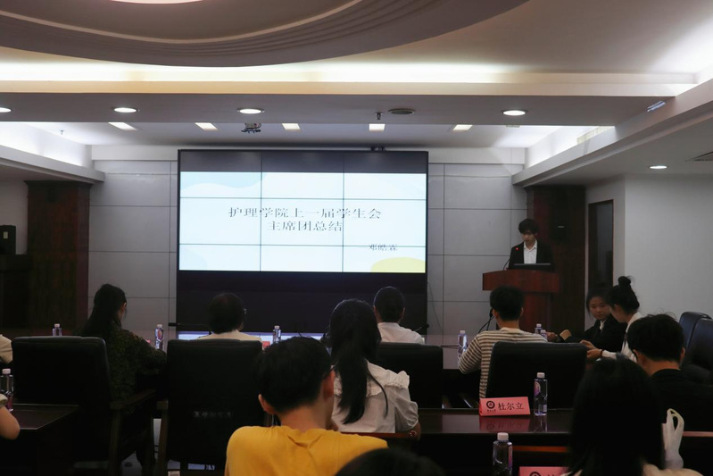 首先,上一届团委副书记裴瑶、研究生会执行主席郭懿萱、学生会主席团邓皓霖、学代团团长黄翱鑫依次作工作总结。她们表示在老师、同学们的支持下,圆满完成了各项工作任务,取得了显著的成绩,并希望新一届学生组织能够紧密配合,再接再厉!