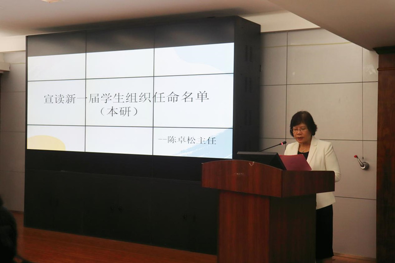 随后,陈卓松老师宣读新一届学生组织任命名单,并为学生骨干代表颁发聘书。